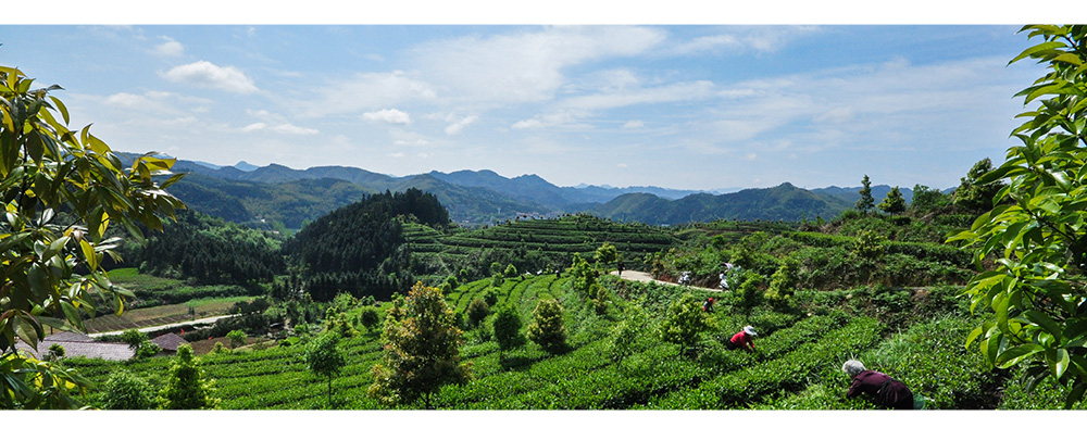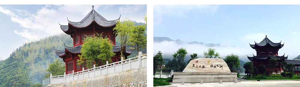 鈞澤源為白沙溪茶廠自建的有機茶園,身臨資江碧水,背靠巍峨高山,晨曦有薄霧環(huán)繞,堪比仙境。緊鄰陶澍園陵,透過裊娜云霧與白沙溪茶廠隔江相望。山地梯田式茶園順著山勢蜿蜒而上,一排排青翠的茶苗在這黛色山嵐上巍然成景,似千軍萬馬,昂首挺胸堅定地守護著先祖根基,延續(xù)著黑茶文化的血脈與精魂。正所謂“頭頂一片天,身藏雪峰山。總督府后院,書香宅為巔。臥看資江水,兩岸一肩擔?!?