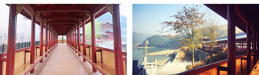 風雨長廊宛若一尾長龍,盤踞在白沙溪廠房前,雕梁畫棟,紅漆黛瓦,傍晚時分,勞作了一天的員工們在此喝茶納涼,談笑風生,孩子們?nèi)宄扇憾鬃陂L椅旁,聽長輩們講述著白沙溪八十載興衰更替、風雨變遷。在這里,黑茶歷史和企業(yè)文化相纏交織,似故人從長廊那頭款款而來,一個微笑,一個眼神便足已慰藉心靈。