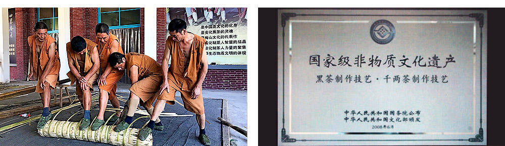 在雪峰山脈這片神奇的土地上,秀麗的風光和適宜的氣候孕育出享譽世界的安化黑茶,其中較具代表的千兩茶堪稱安化黑茶“一絕”。“伙計們咧,把杠抬啰,齊心壓咧,用力踩呦,呦嗨!”在這原生態(tài)的帶有濃郁茶文化氣息的踩茶號子中,粗獷的男性力量與黑茶原始野性完美融合,貫穿于神秘千兩茶的每一道古老手工工序中,又經(jīng)日曬夜露,吸天地之靈氣,納宇宙之精華于茶體,讓你猶如身臨遠古秘境,領略千兩傳奇風采。