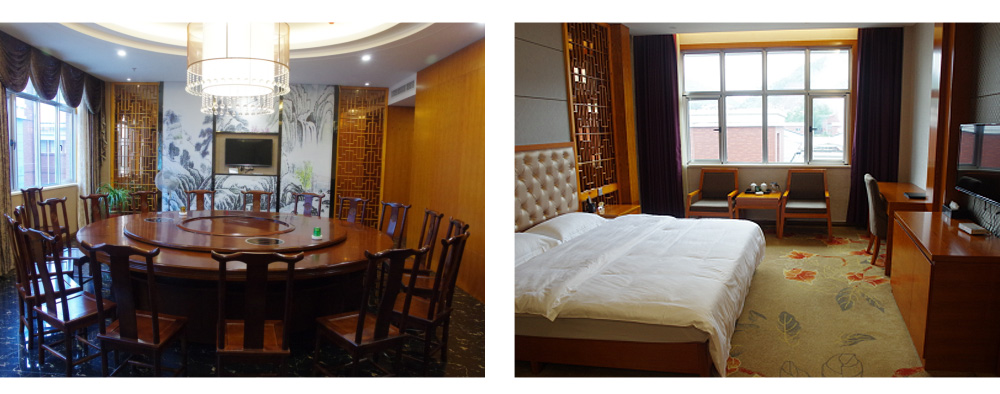 公司設有茶主題雅座包間,選用當?shù)貞拘迈r食材,清新可口,天然健康,頗具安化本土特色??头垦b修精致、環(huán)境舒適、服務周全,設施齊全,且配備有專門的泡茶工具及自產(chǎn)優(yōu)質(zhì)黑茶,讓入住者賓至如歸,可觀江景,可賞茶香。