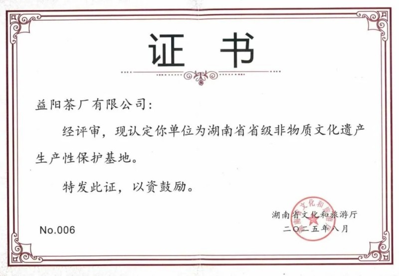 近日,湖南省文化和旅游廳公布首批省級非物質(zhì)文化遺產(chǎn)生產(chǎn)性保護(hù)示范基地名單,集團(tuán)益陽茶廠(以下簡稱益陽茶廠)憑借其在茯磚茶制作技藝領(lǐng)域的深厚積淀與持續(xù)創(chuàng)新,成功入選。