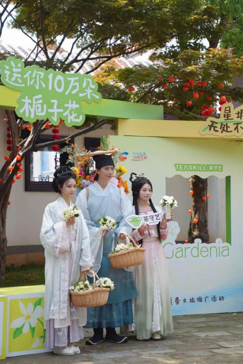 活動(dòng)期間,茶守藝與爺爺不泡茶、氣味魔法師等知名品牌攜手,共同見證了“星城無處不飛花”的浪漫場(chǎng)景。茶守藝不僅與天心閣一同打造了梔子花活動(dòng)主會(huì)場(chǎng),還攜旗下天心閣、解放西、烈士公園等六家門店,積極配合主辦方派發(fā)十萬朵梔子花,誠(chéng)邀星城人民沉浸式體驗(yàn)“老長(zhǎng)沙的夏天”。