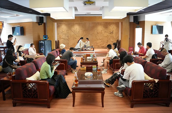 在長(zhǎng)達(dá)2個(gè)小時(shí)的互動(dòng)時(shí)間里,大V達(dá)人為燦爛的湘茶文化所吸引,主動(dòng)當(dāng)起了湘茶宣傳大使。在金花酵庫(kù),他們?cè)谠敿?xì)了解了輕輕茶、熊貓大叔等黑茶提取物產(chǎn)品的生產(chǎn)流程、保健機(jī)理等知識(shí)后,紛紛自覺為湖南黑茶代言,助力健康中國(guó);在湖南省茶葉博物館,他們通過(guò)茶藝表演、茶園賞春制茶、博物館之旅、唐代煎茶、特色民俗茶飲—擂茶等沉浸式體驗(yàn),無(wú)不贊嘆湘茶文化的獨(dú)特魅力和博大精深,紛紛與工作人員添加交流方式,及時(shí)了解和宣傳湘茶文化;在茶守藝閃鋪,他們?cè)谄凤嫴栾嫼?,紛紛拿起冷泡茶、速溶茶、奶茶等產(chǎn)品與工作人員合影,打卡轉(zhuǎn)發(fā)微博,以實(shí)際行動(dòng)表達(dá)對(duì)產(chǎn)品的喜愛。